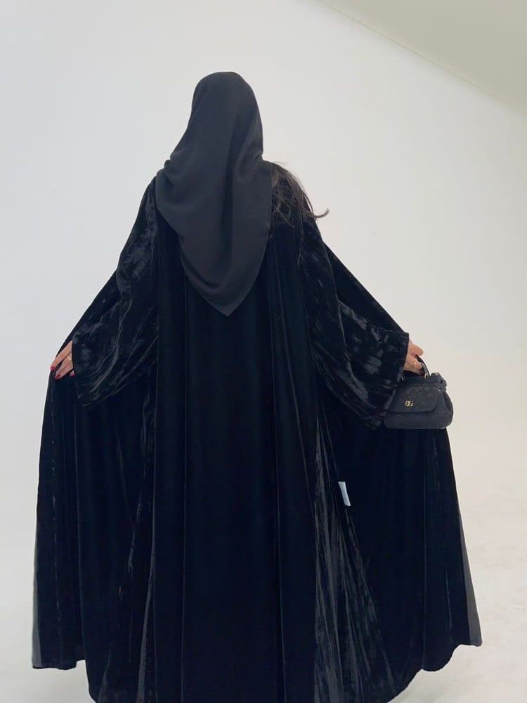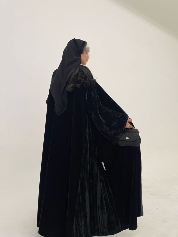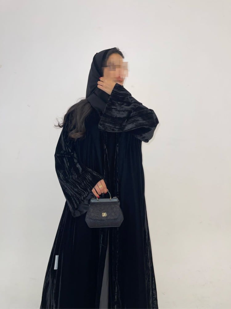 قماش العباية : مخمل ساده مع مخمل مكسر