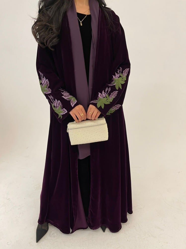 قماش العباية : مخمل كوري مع تطريز يدوي في الكم