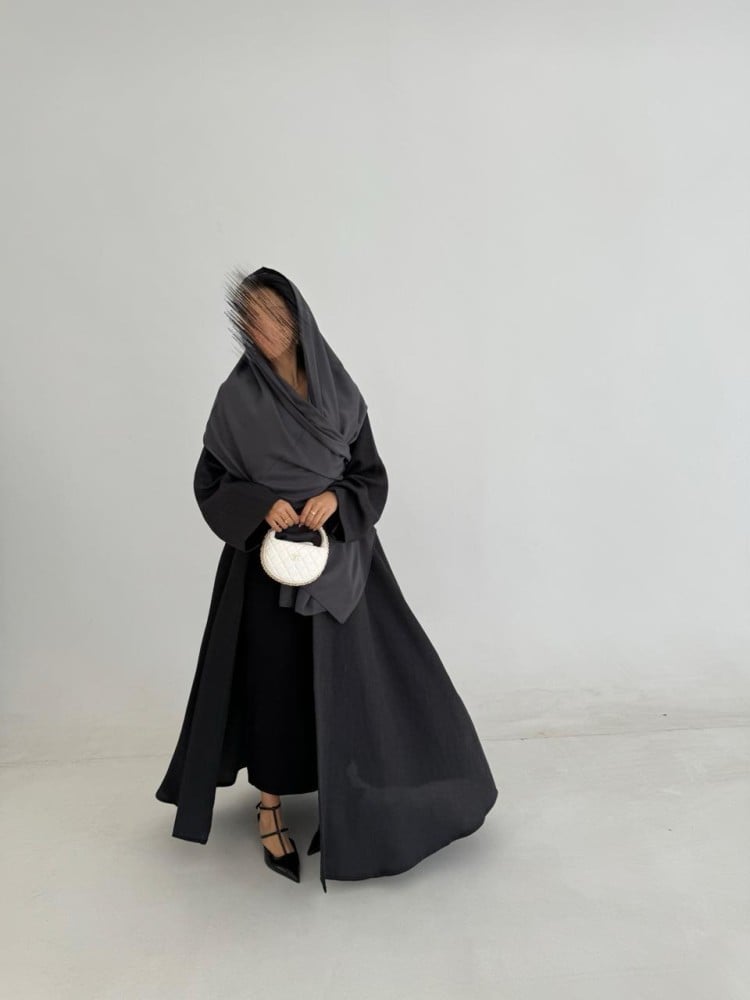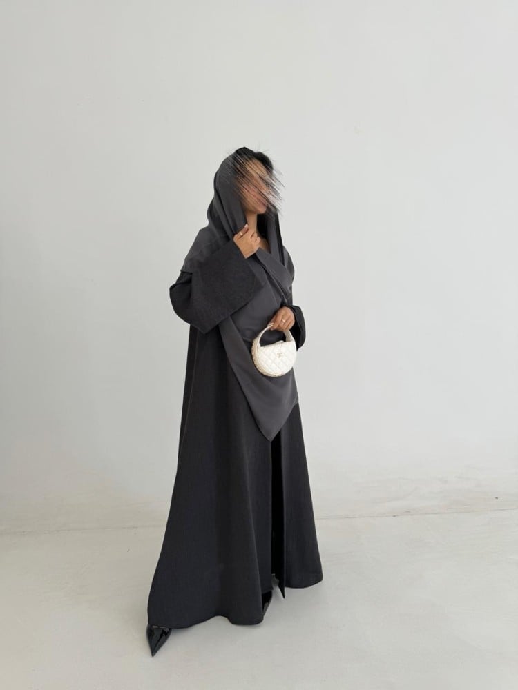 قماش العباية : كريب تركي مستورد رصاصي غامق