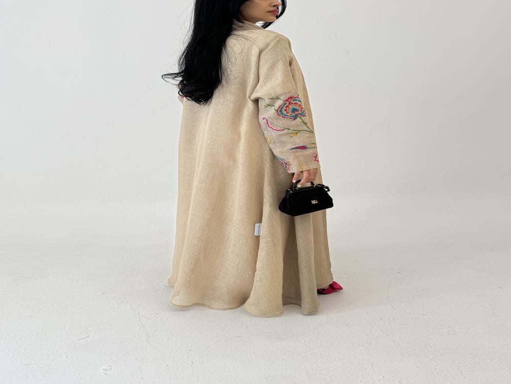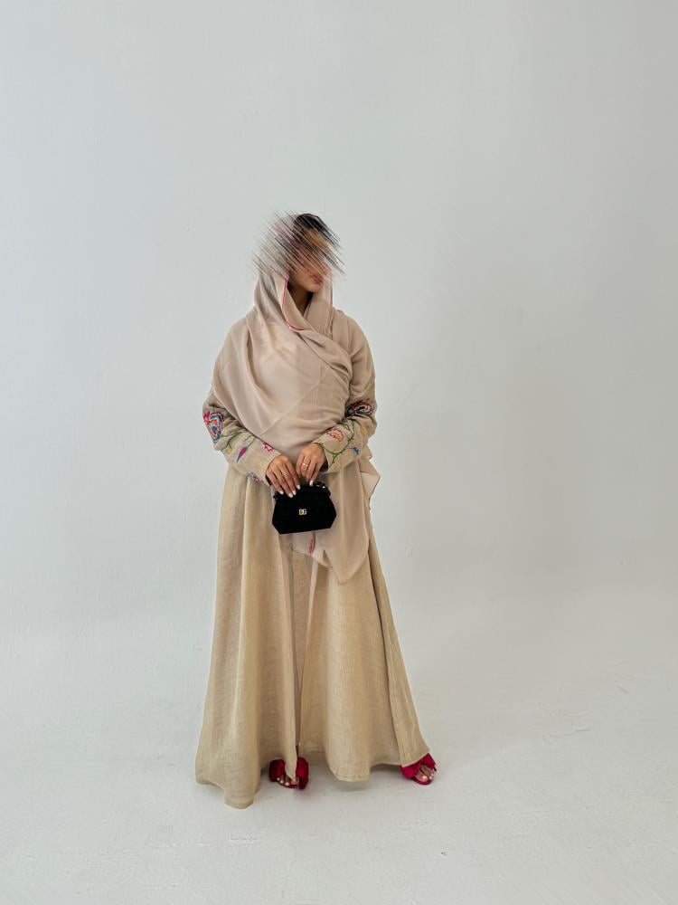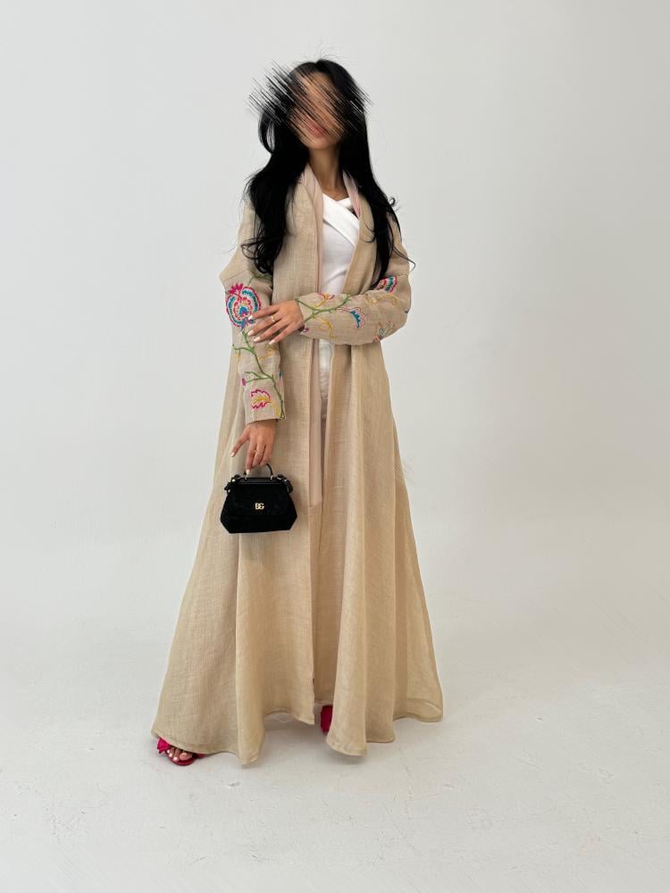 قماش العباية : لنن طبيعي مع لنن طبيعي مطرز