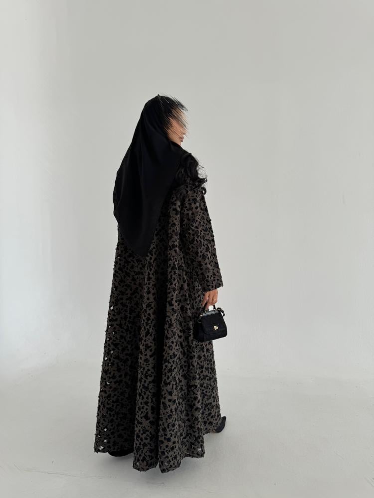 قماش العباية/ كريب بني مشجر دانتيل