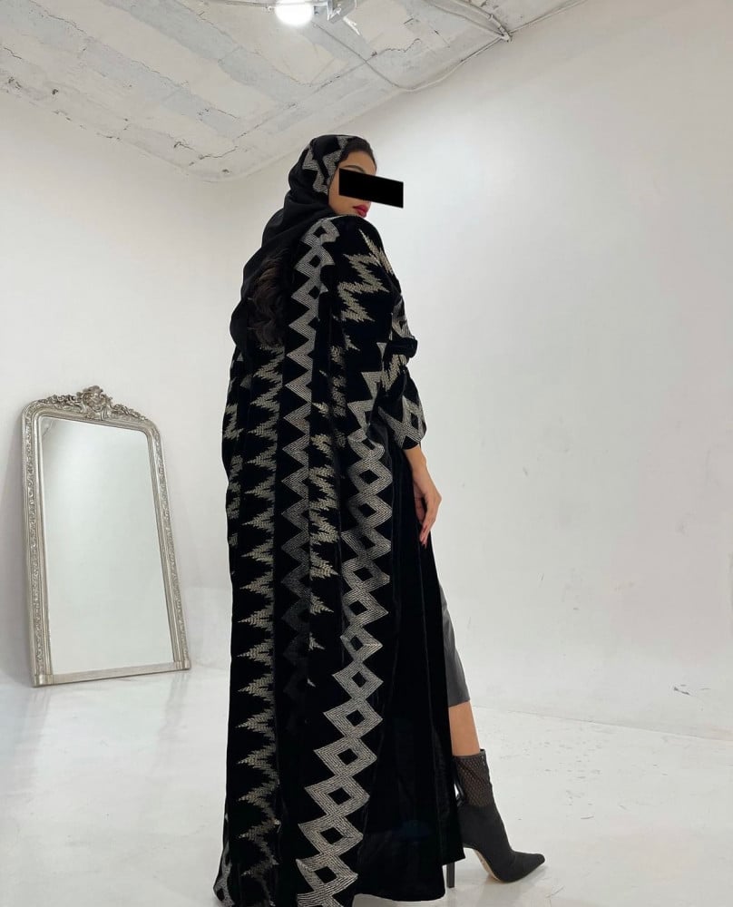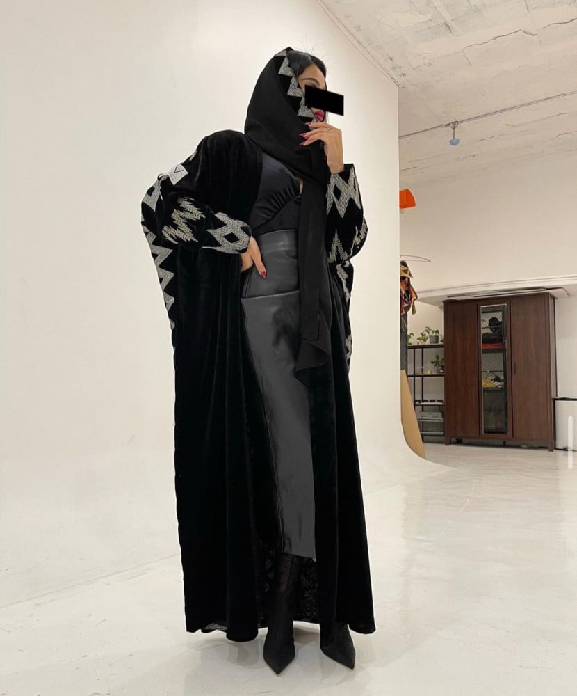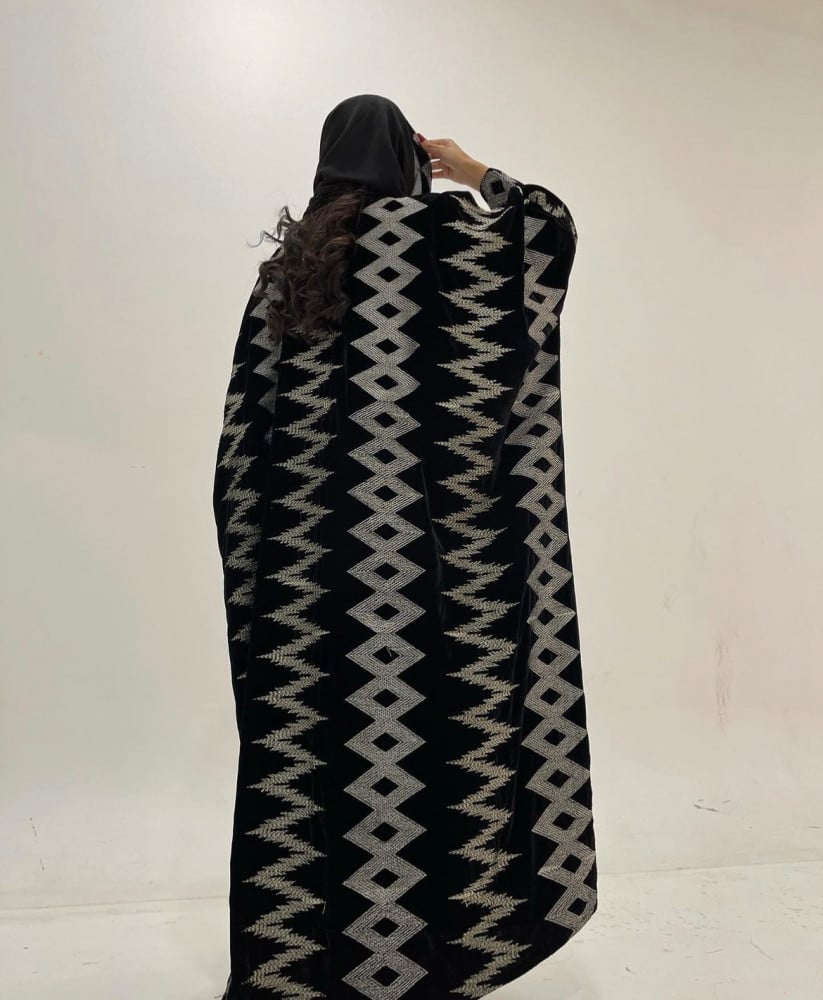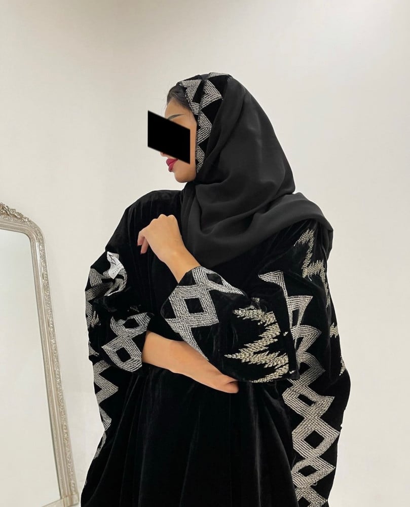 قماشها : مخمل مطرز من الخلف ومن قدام مخمل سادة