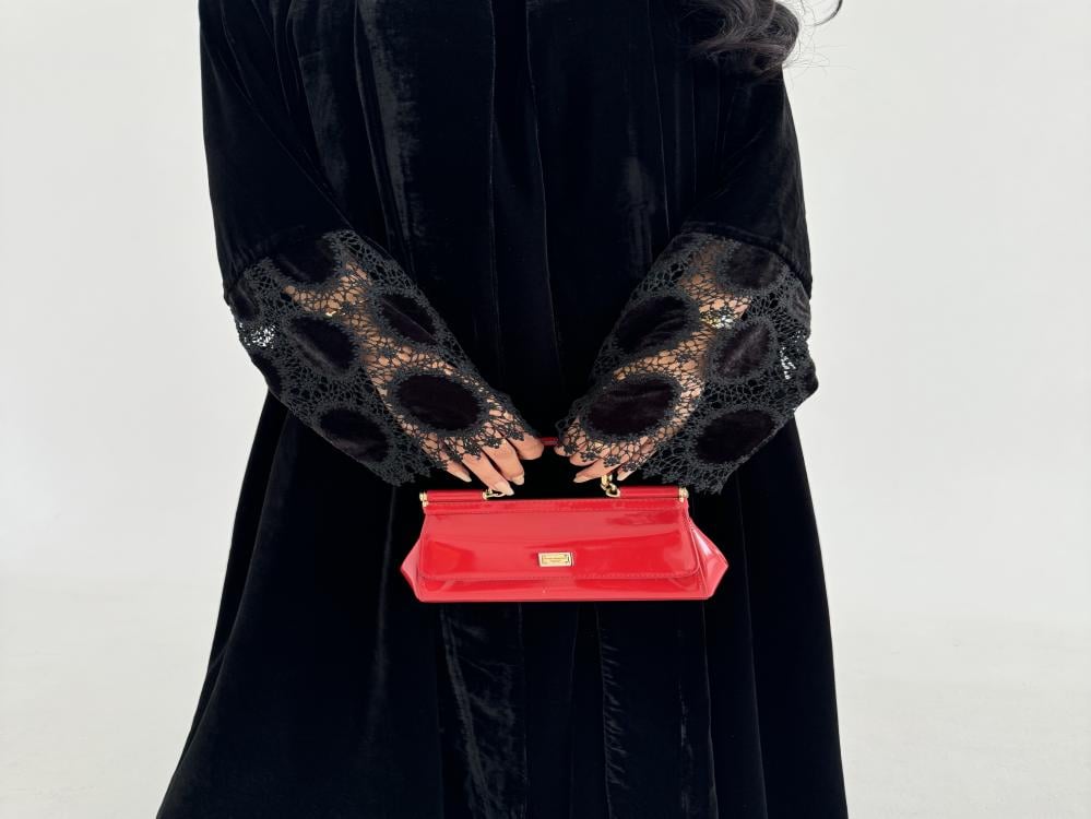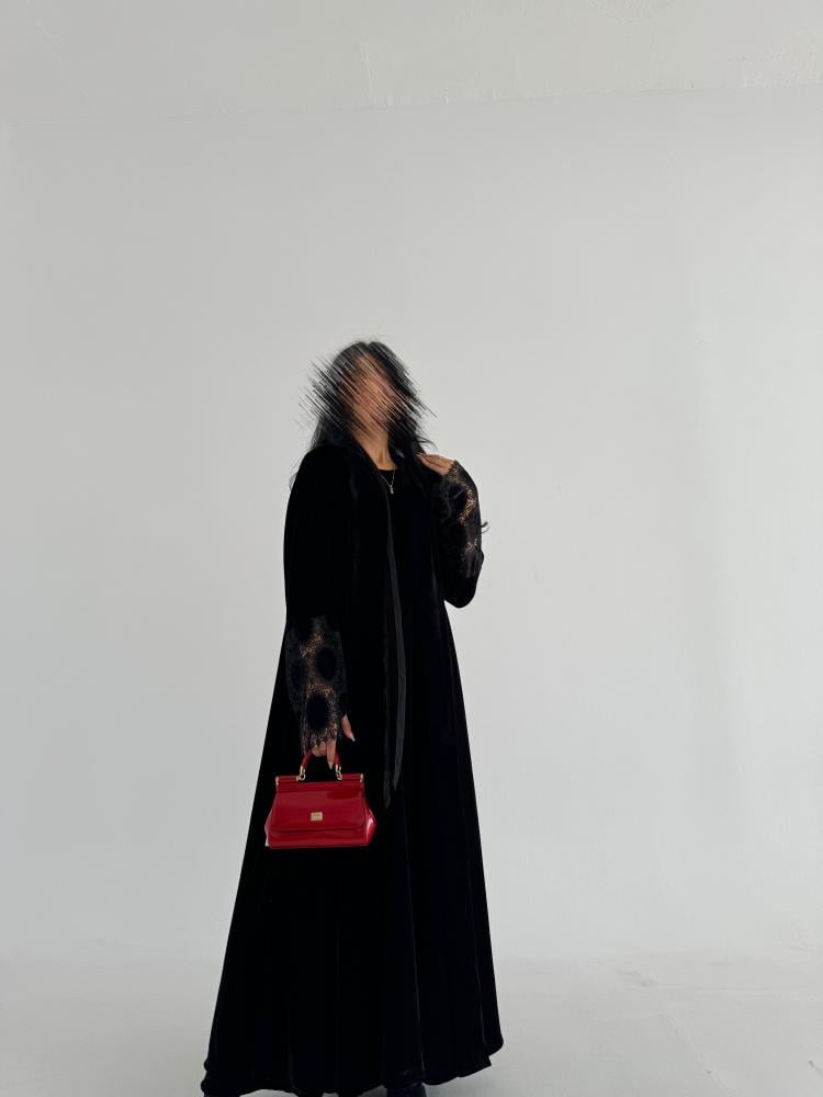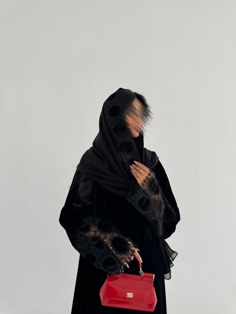 قماش العباية/مخمل كامل مع دانتيل مطرز مخمل بكم